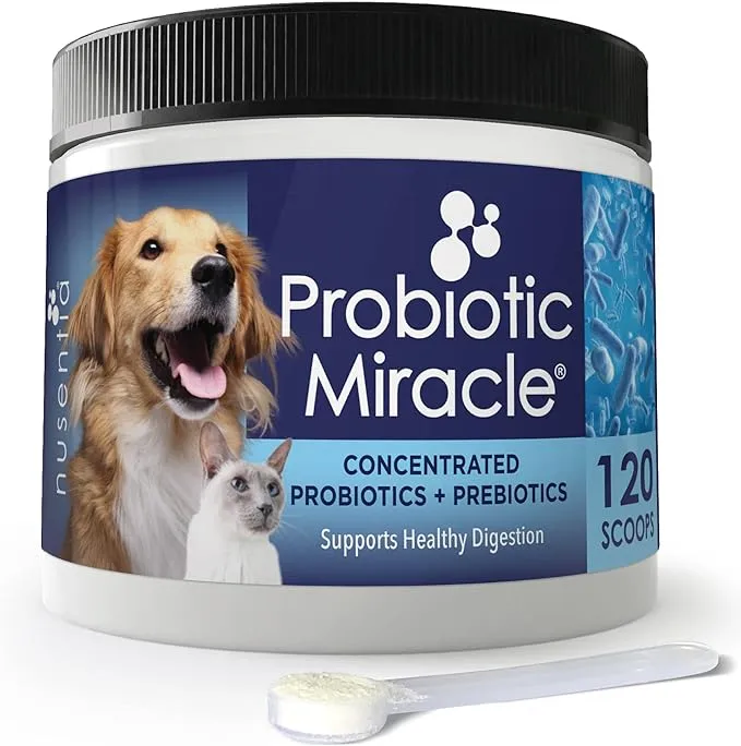 We generally recommend giving dogs a 4-6 strain probiotic in chew form, to make it easy to